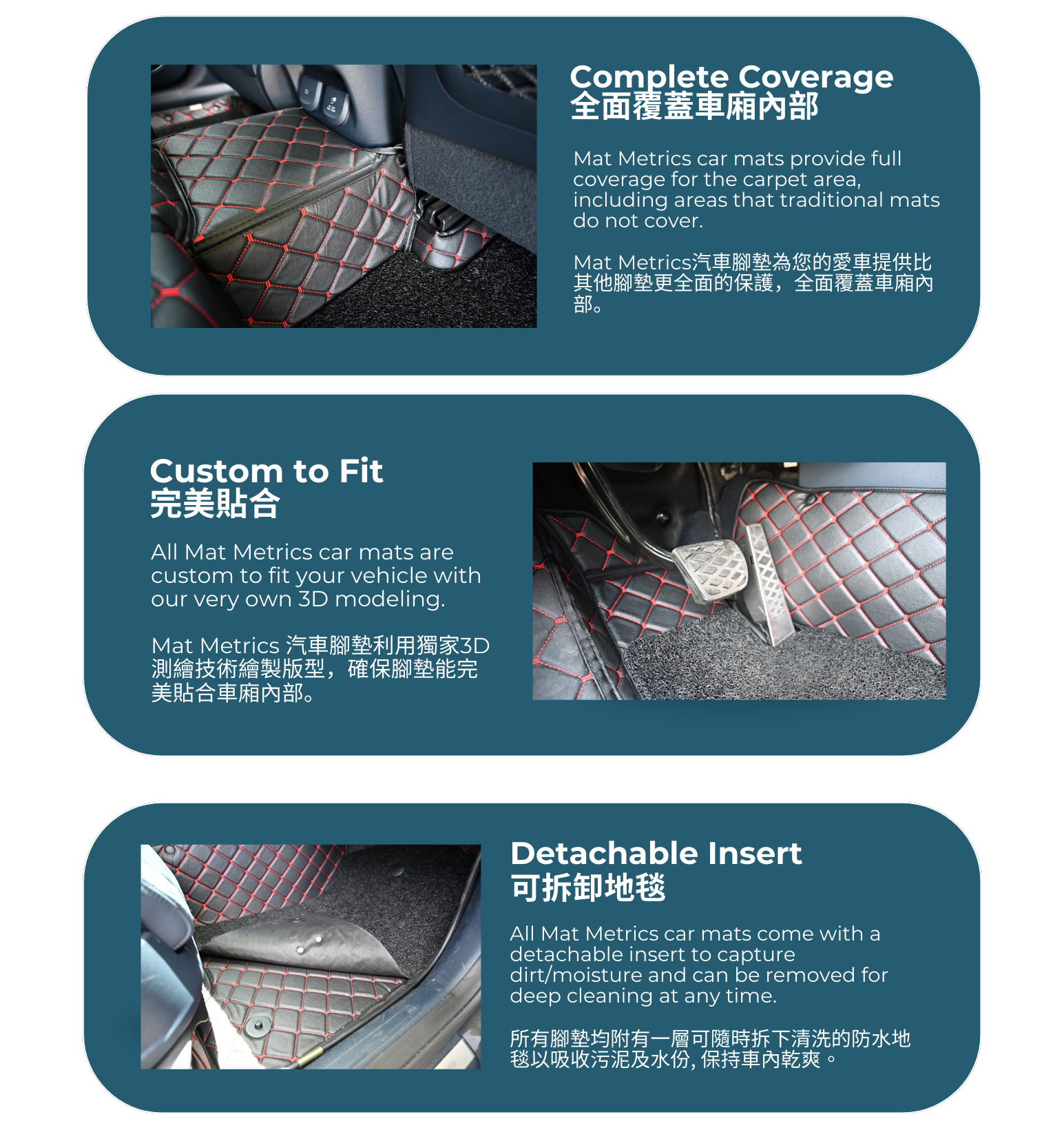 MatMetrics Custom Car Mats 轻奢皮革汽车脚踏垫 多款颜色可定制 车饰品